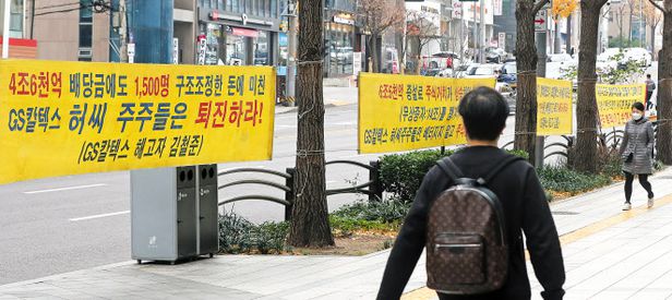 20ÀÏ ¿ÀÈÄ ¼¿ï °³²±¸ GSŸ¿ö ¾Õ µµ·Î¿¡ °É·ÁÀÖ´Â Çö¼ö¸·À¸·Î, GSĮŨ½º Ãø¿¡ º¹Á÷°ú ¼ÕÇØ¹è»óÀ» ¿ä±¸Çϰí ÀÖ´Ù. /Àå·Ã¼º ±âÀÚ