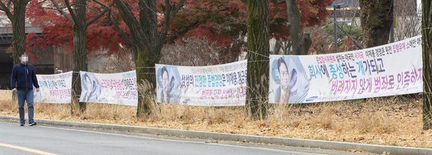 20ÀÏ °æ±â ±ºÆ÷½Ã¿¡ ÀÖ´Â »ï¼º±×·ì ¼ÒÀ¯ °ñÇÁÀåÀÎ ¾È¾çÄÁÆ®¸®Å¬·´ ÁøÀÔ·Î °¡·Î¼ö¿¡ ÀÌÀç¿ë »ï¼ºÀüÀÚ ºÎȸÀåÀÇ Ã³¹úÀ» Ã˱¸ÇÏ´Â Çö¼ö¸·ÀÌ °É·Á ÀÖ´Ù. Çö¼ö¸·Àº Áö³ 2¿ùÂë ¹Î³ëÃÑ Àü±¹±Ý¼Ó³ëµ¿Á¶ÇÕ »ï¼ºÁöȸ ¼Ò¼Ó ³ëÁ¶¿øµéÀÌ ¼³Ä¡ÇÑ °ÍÀ¸·Î ¾Ë·ÁÁ³´Ù. /±èÁöÈ£ ±âÀÚ